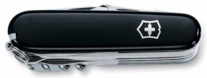 Большое лезвие Малое лезвие Штопор Консервный нож с: – малой отверткой Открывалка для бутылок с: – отверткой – инструментом для снятия изоляции Шило, кернер Кольцо для ключей Пинцет Зубочистка Ножницы Многофункциональный крючок Пила по дереву Инструмент для чистки рыбы с: – инструментом для извлечения рыболовного крючка – линейкой (сантиметры и дюймы) Пилка для ногтей с: – напильником по металлу – инструментом для ухода за ногтями – ножовкой по металлу Отвертка Стамеска, скребок Плоскогубцы с: – инструментом для перекусывания проволоки – обжимным инструментом Крестовая отвертка Лупа Шариковая ручка Булавка Мини-отвертка Ушко для шитья " />
