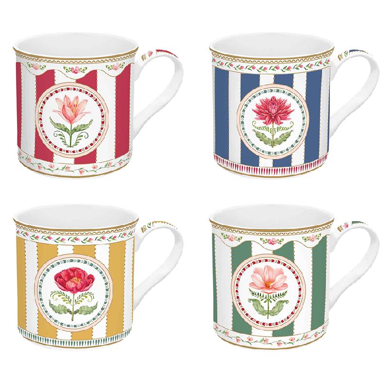 Материал: фарфор. Объем кружки: 300 мл. Высота чашки – 8,7 см, ширина чашки – 11,8 см, глубина чашки – 8,6 см. Количество: 4. Набор поставляется в подарочной упаковке.