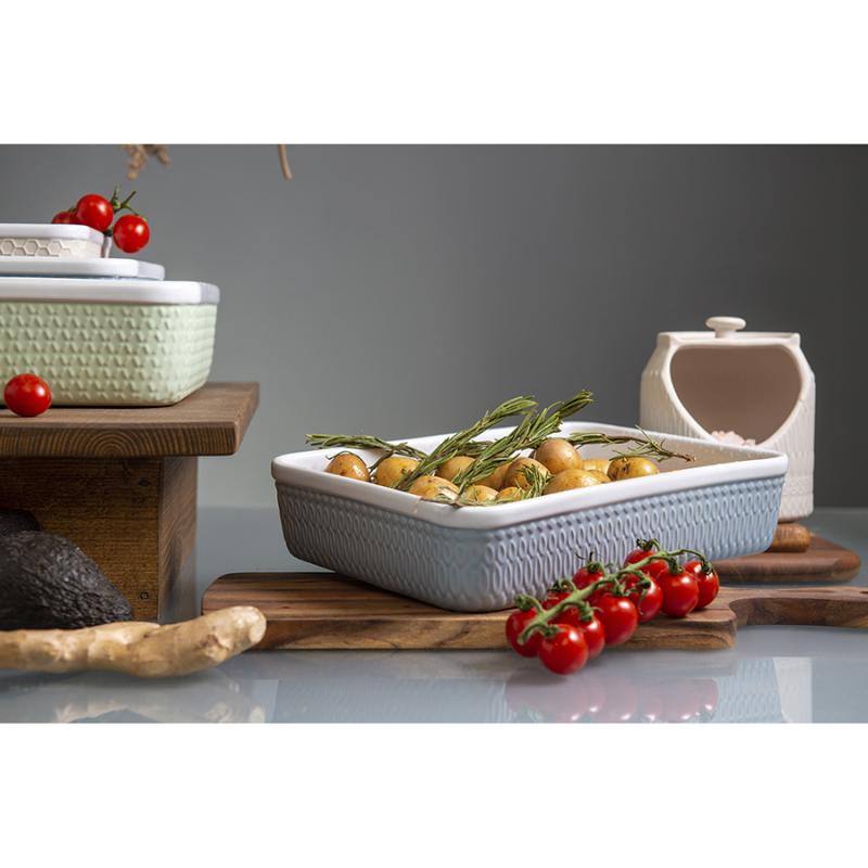 Материал: каменная керамика. Размеры: 28,5х21х6 см. Объем: 2,3 л. Цвет: серо-голубой.