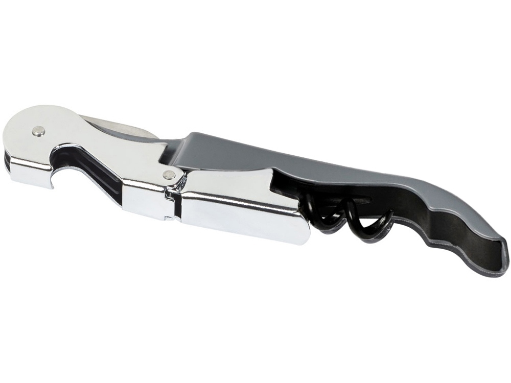 Штопор с буравчиком, открывалкой для бутылок и ножом для срезания фольги. Нержавеющая сталь.