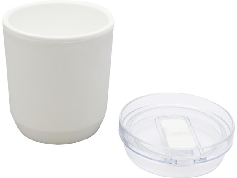 Кружка с простым дизайном, подходящая для большинства кофемашин и автомобильных подстаканников. Имеет двойную конструкцию из переработанного пластика PP снаружи и пластика PP внутри. Раздвижная крышка изготовлена из пластика AS и PP. Объем: 180 мл. Recycled Plastic.