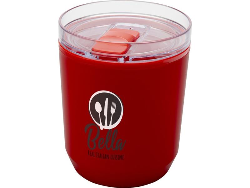 Кружка с простым дизайном, подходящая для большинства кофемашин и автомобильных подстаканников. Имеет двойную конструкцию из переработанного пластика PP снаружи и пластика PP внутри. Раздвижная крышка изготовлена из пластика AS и PP. Объем: 180 мл. Recycled Plastic.