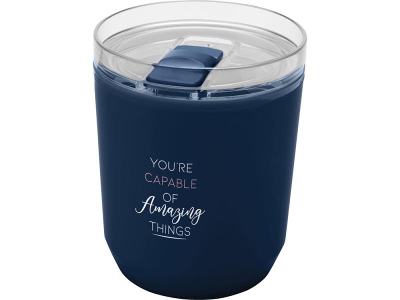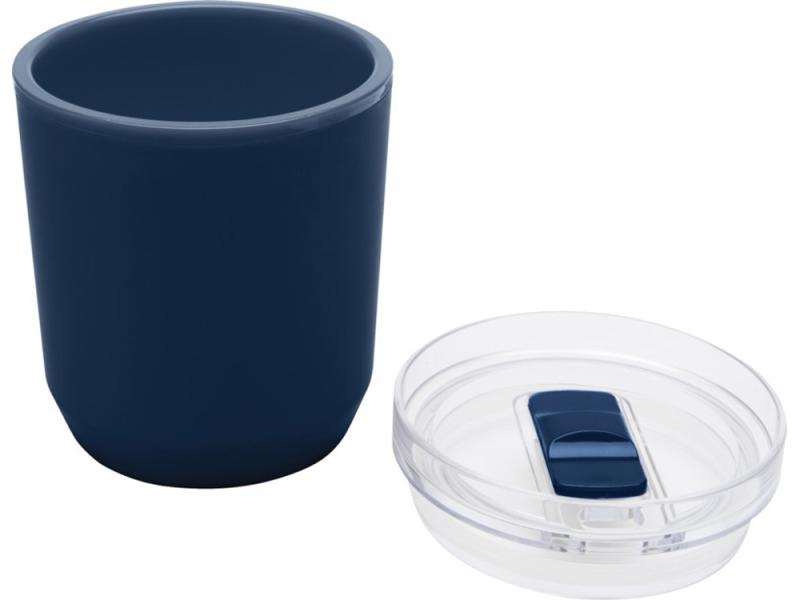 Кружка с простым дизайном, подходящая для большинства кофемашин и автомобильных подстаканников. Имеет двойную конструкцию из переработанного пластика PP снаружи и пластика PP внутри. Раздвижная крышка изготовлена из пластика AS и PP. Объем: 180 мл. Recycled Plastic.