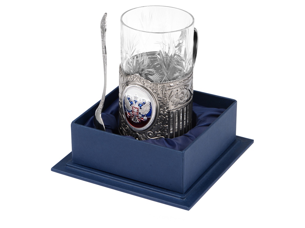Подстаканник с хрустальным стаканом и ложкой Российский