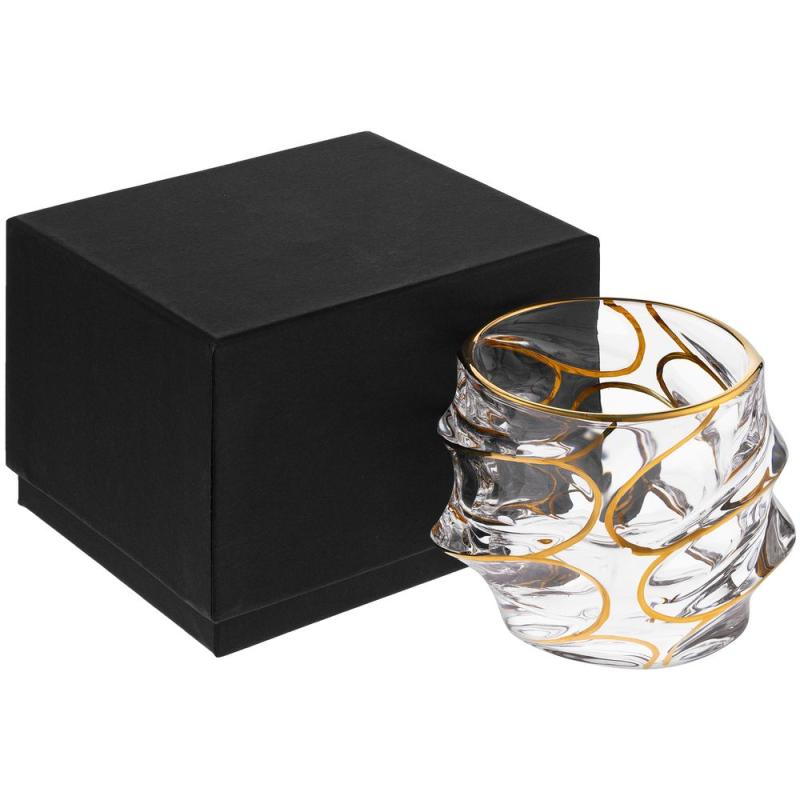 Стакан выполнен из толстого стекла повышенной прозрачности, что позволяет оценить цвет и чистоту крепких алкогольных напитков.Золотистая краска наносится вручную.