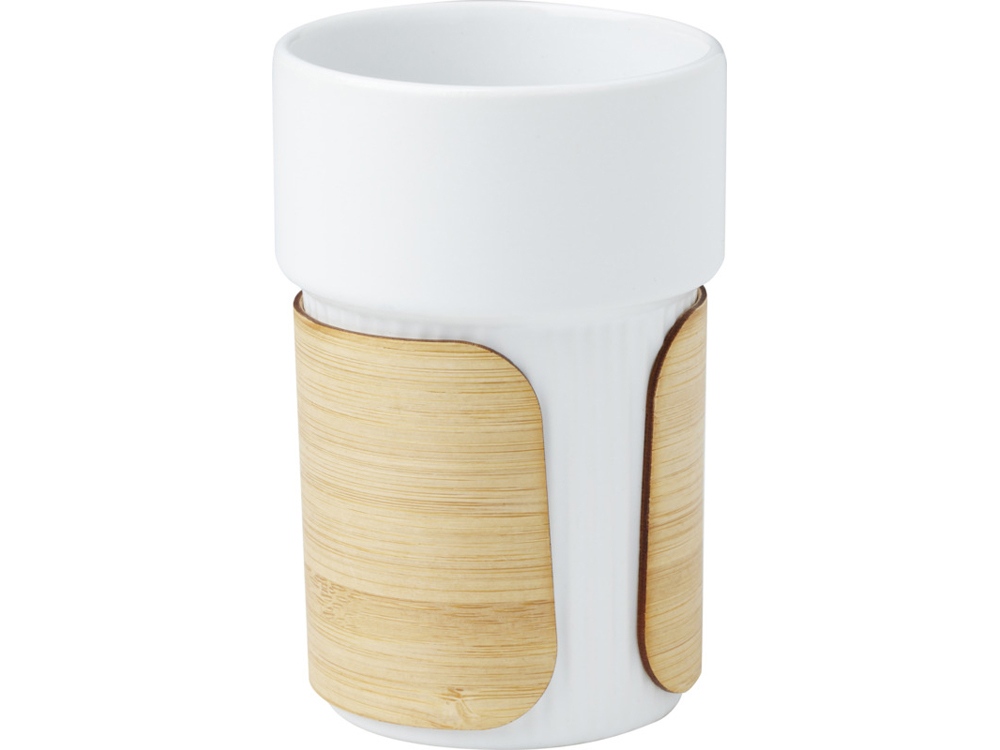 Стильный керамический стакан Fika поставляется со съемным бамбуковым чехлом, который идеально подходит для питья горячих напитков. Используемый бамбук поступает из устойчивых, экологически чистых и социально ответственных источников. Объем: 340 мл. Поставляется в коробке из переработанного картона. 94% Stoneware.