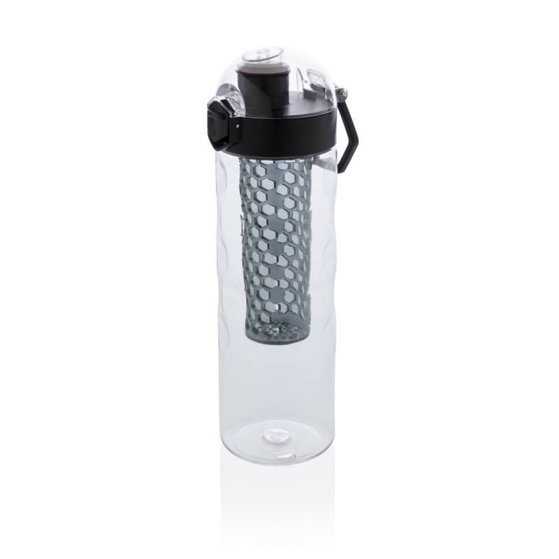 Пейте еще более вкусную и полезную воду, добавив в нее фрукты! Когда вы пьете из этой стильной бутылки, одна ваша рука остается свободной. Крышка открывается легким нажатием на кнопку, на которой предусмотрен специальный механизм блокировки, исключающий случайное нажатие. На бутылке предусмотрена удобная ручка для переноски. Эта бутылка с контейнером для фруктов изготовлена из прочного инновационного материала Tritan, который не впитывает запахи и не содержит BPA. Объем 700мл. Зарегистрированный дизайн®