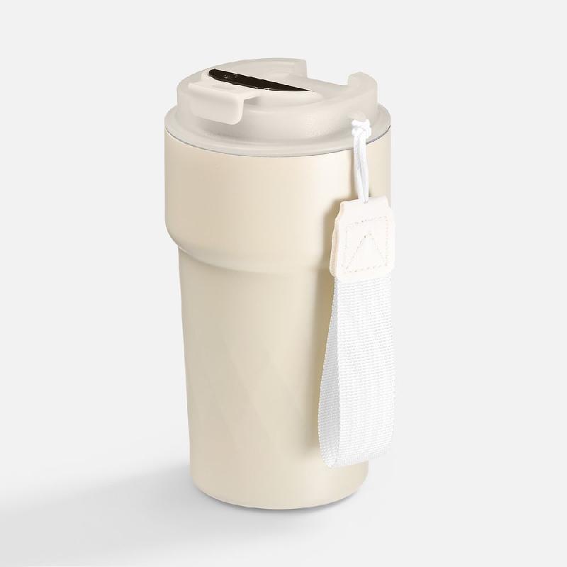 Смарт-термостакан в металлическом корпусе с легким рельефом.