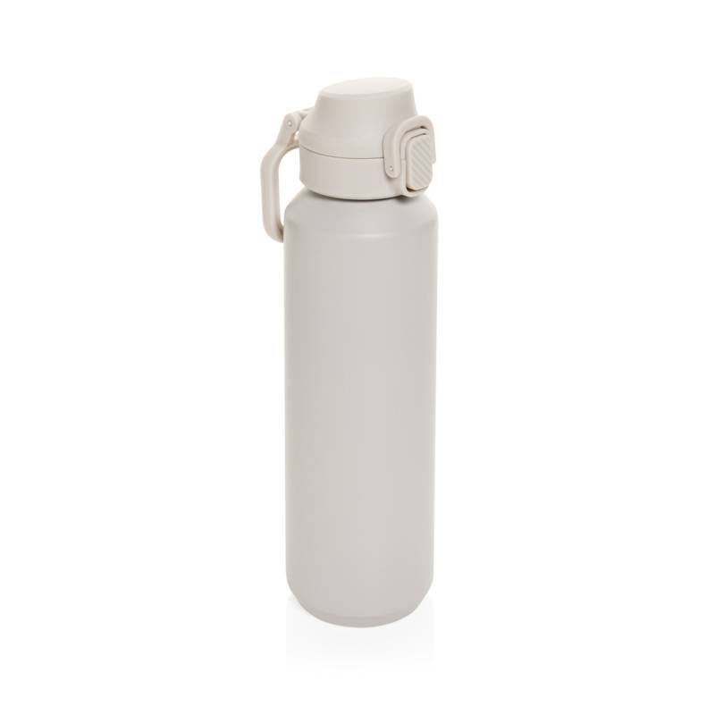 Спортивная бутылка Via — идеальный компаньон во время активного отдыха. Изготовлена из переработанной стали марки 304. Оснащена герметичной запираемой крышкой, которую при необходимости легко открутить. Бутылка предназначена для холодных напитков, рекомендовано только ручное мытье. На 73% состоит из переработанной стали, сертифицированной RCS (Recycled Claim Standard). Сертификация RCS гарантирует полный контроль всей цепочки поставок переработанных материалов. Не содержит бисфенол А, вредный для организма. Объем 600 мл.