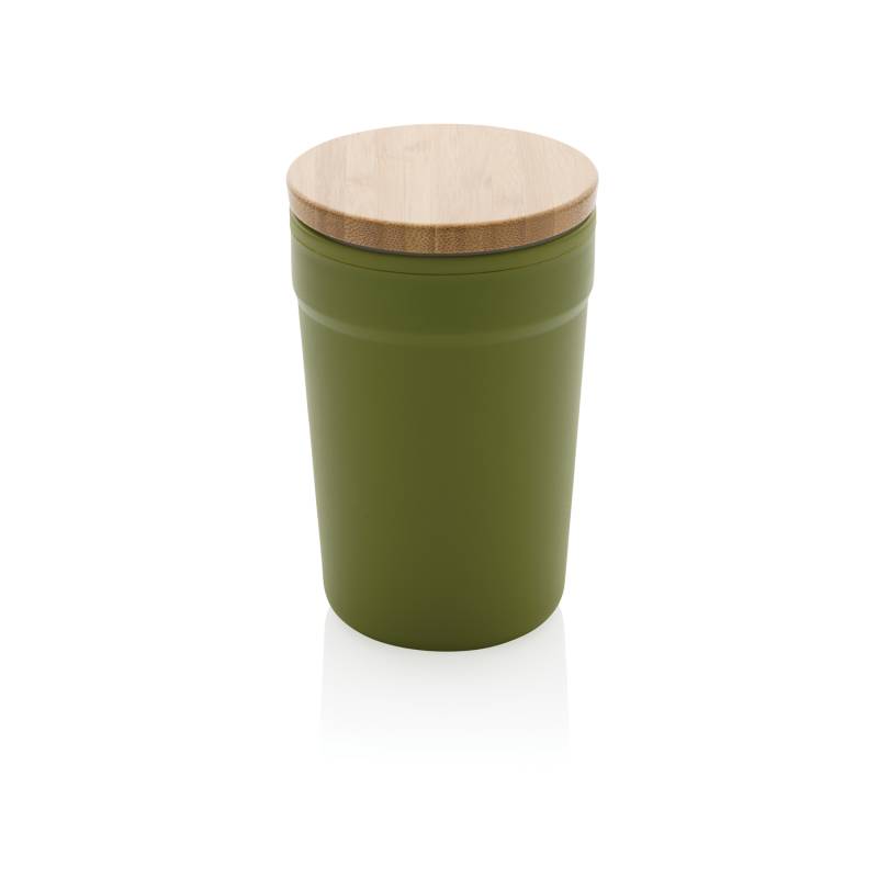 Стакан из переработанного полипропилена GRS с бамбуковой крышкой, 300 мл