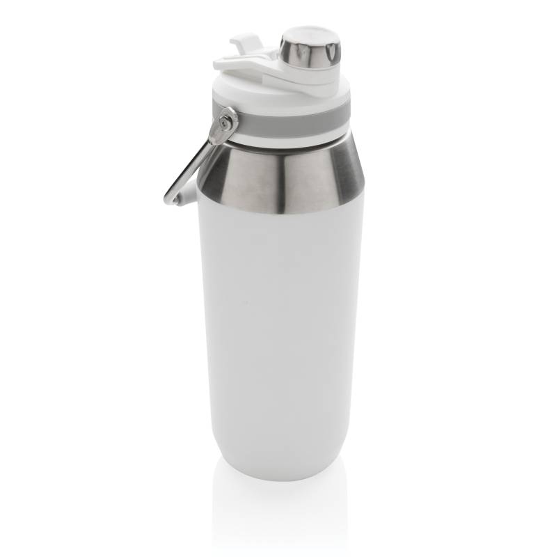 Идеальная бутылка из нержавеющей стали для тех, кто всегда в движении. Оснащена двумя вариантами питья: откидной трубочкой и завинчивающейся крышкой. Есть ручка для удобной переноски. Двойные стенки из нержавеющей стали позволяют сохранить напитки горячими до 5 и холодными до 15 часов. Матовое покрытие устойчиво к царапинам. Объем 1 л. Не содержит BPA.