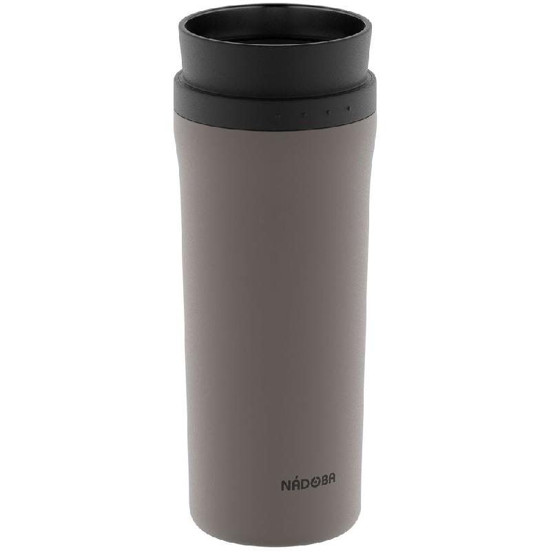 Стильная термокружка с металлическим корпусом и удобным клапаном для питья.