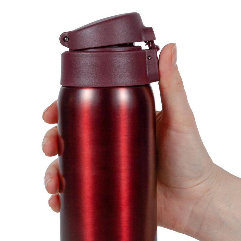 Термокружку легко открыть одной рукой — особенно удобно в машине или на улице. Дополнительный фиксатор на крышке предотвратит случайное проливание напитка.