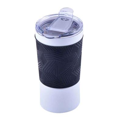 Термокружка вакуумная 'Funny" белая, голубой силикон