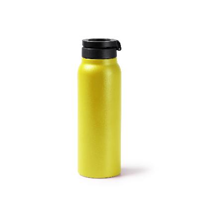Бутылка-термос из переработанной нержавеющей стали с двойными стенками. Крышка с магнитным кольцом для держателя мобильного телефона. Со складной соломкой и нескользящей резиной на основании. Емкость: 750 мл.