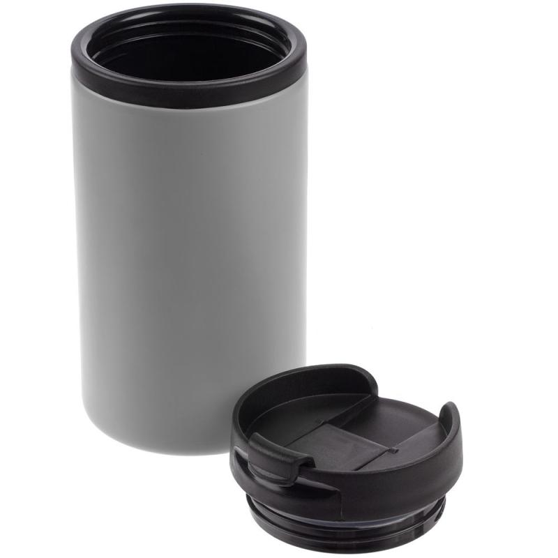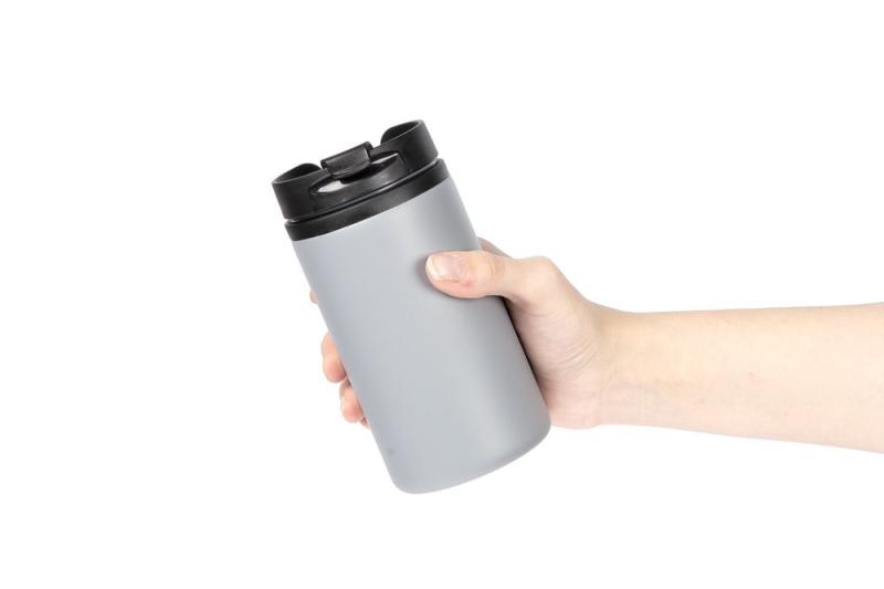 Двухслойная конструкция из пищевого пластика внутри и нержавеющей стали снаружи. Герметичная завинчивающаяся крышка с откидным клапаном для питья.