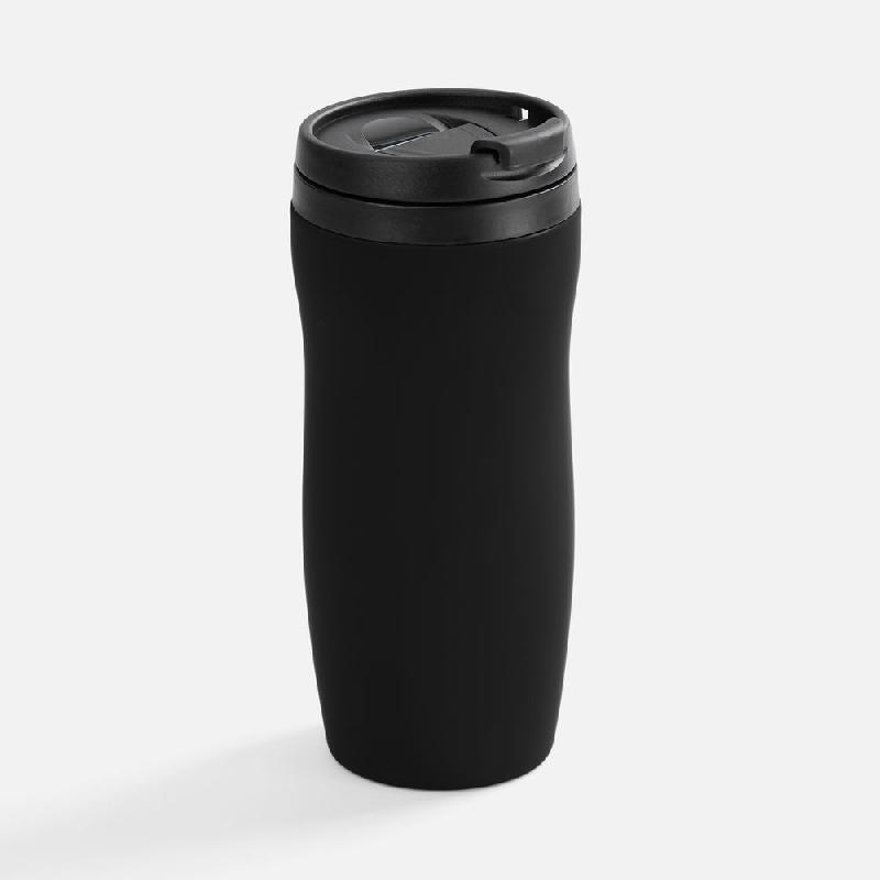 Двухслойная конструкция из нержавеющей стали снаружи и пищевого пластика внутри. Герметичная завинчивающаяся крышка с откидным клапаном для питья. Покрытие софт-тач. В отверстие в крышке можно вставить шнурок для удобного ношения стакана на руке. Шнурок в комплект не входит.