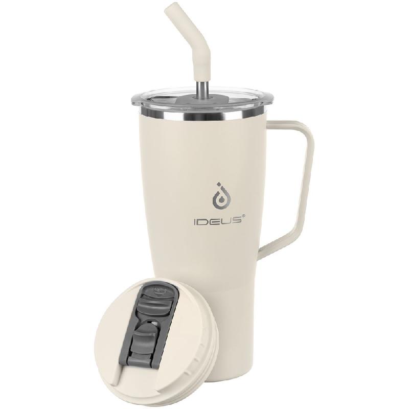 2 крышки в комплекте: одна на 100% герметичная с механизмом блокировки отверстия для питья, вторая — с отверстием для трубочки