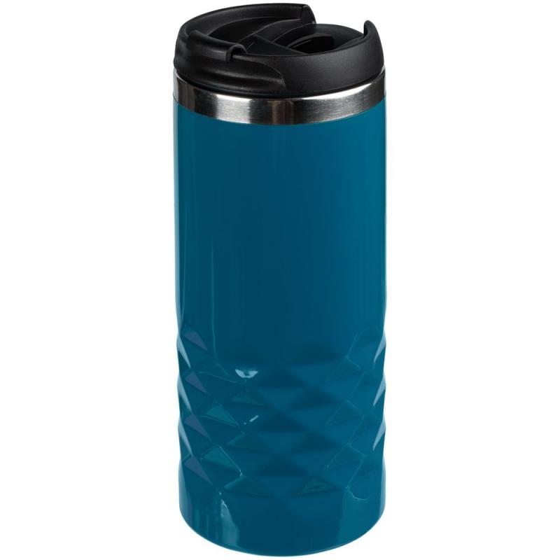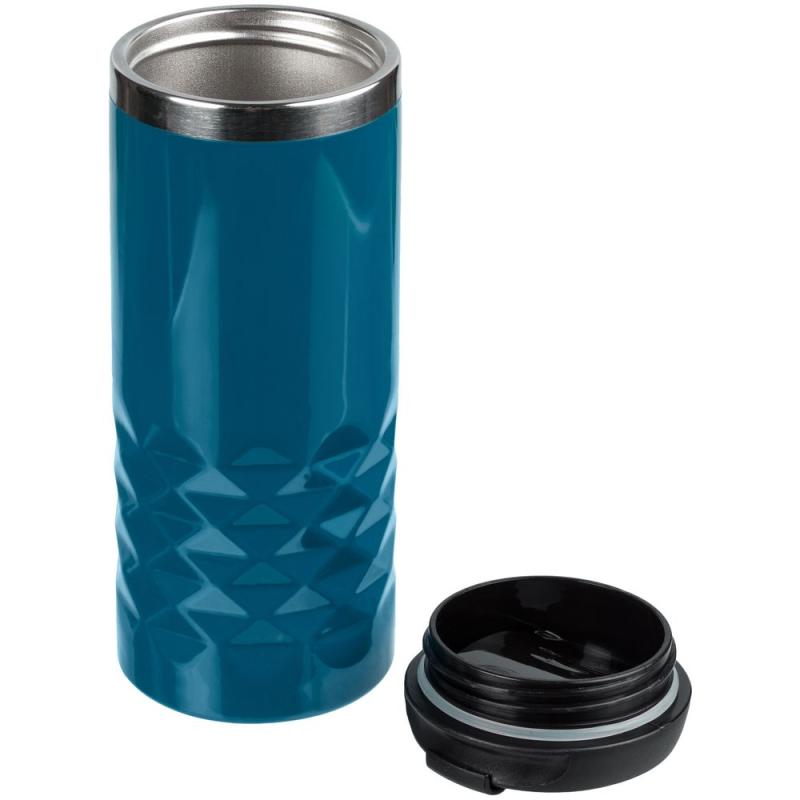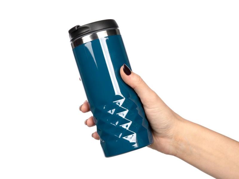 Двухслойная конструкция из пластика снаружи и пищевой нержавеющей стали внутри. Герметичная завинчивающаяся крышка с откидным клапаном для питья.