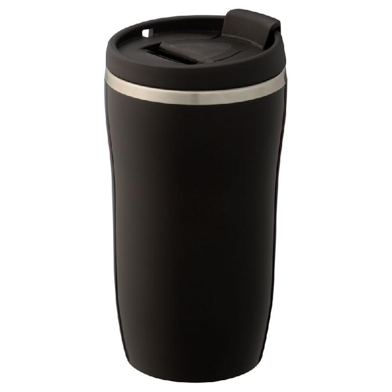Двухслойная конструкция из пластика снаружи и пищевой нержавеющей стали внутри. Герметичная завинчивающаяся крышка с откидным клапаном для питья. В отверстие в крышке можно вставить шнурок для удобного ношения стакана на руке. Шнурок в комплект не входит.