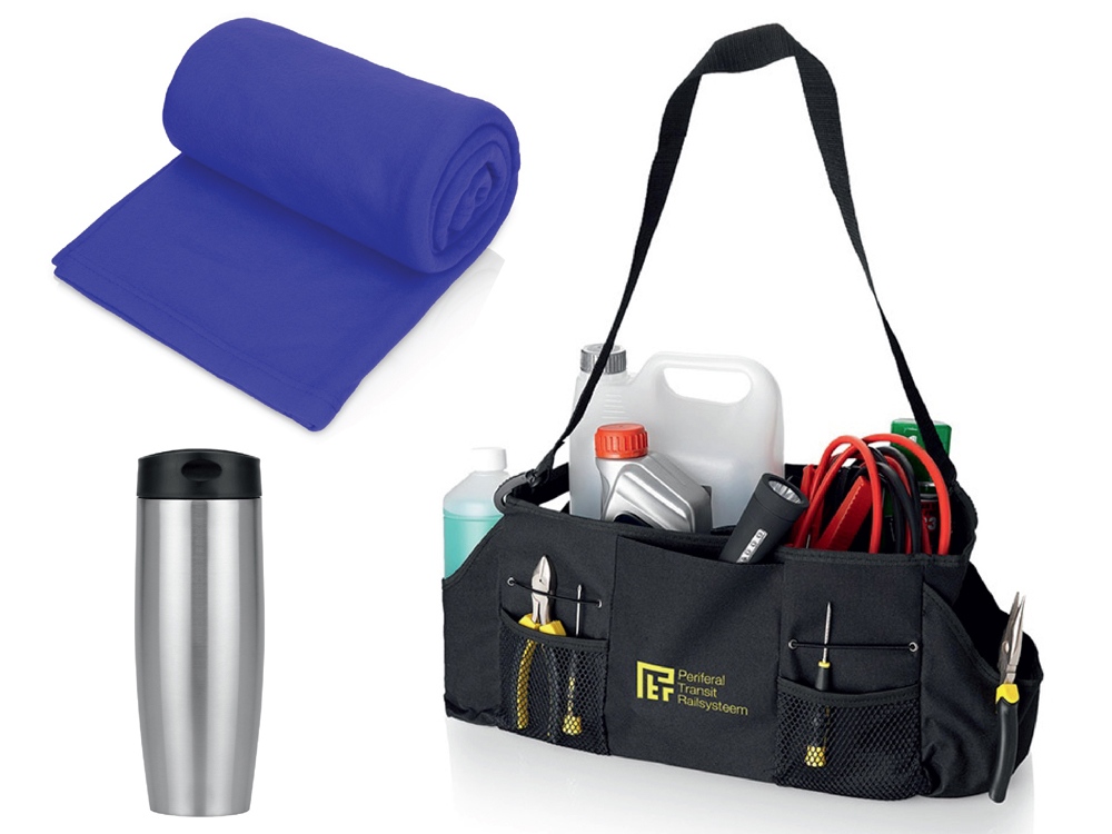 Набор для автомобиля с пледом, термокружкой в сумке для инструментов