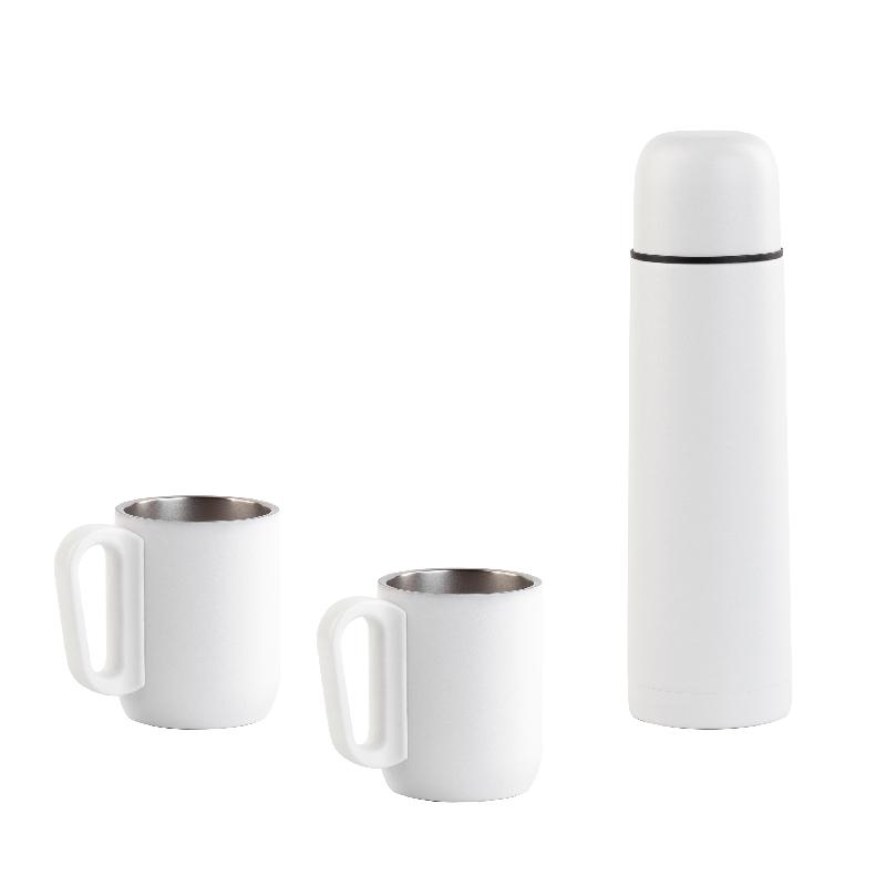 В набор входят: термос h 24,5 x d 7 см, емкость 500 мл 2 кружки h 8 x d 7 см, емкость 220 мл