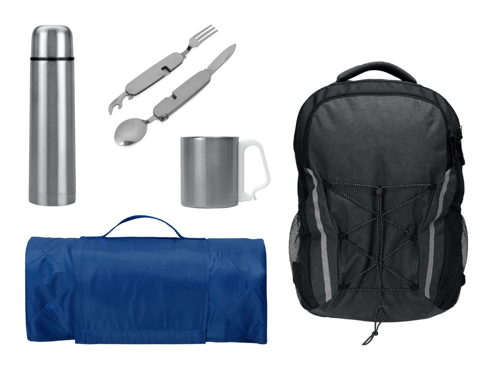 Набор туриста с термосом, кружкой, столовыми приборами и пледом