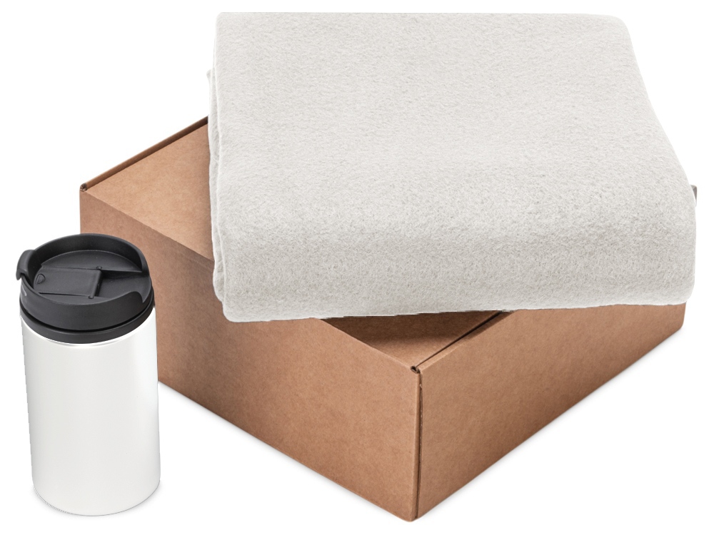 Когда наступает холодная погода, самый оптимальный подарок - это набор плед и термокружка. Зимним вечером, обернувшись в плед дома или на работе, вы будете себя чувствовать в тепле и комфорте. А напиток в термокружке согреет вас, придаст сил и бодрости. Набор упакован в стильную крафтовую коробку.