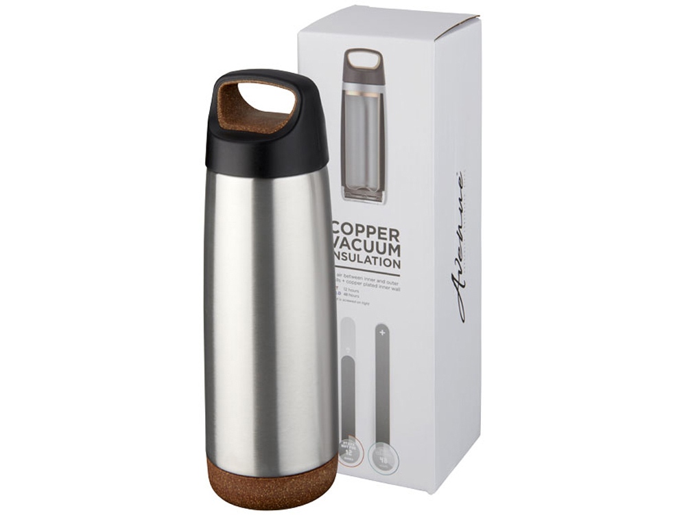 Спортивная медная бутылка с вакуумной изоляцией Valhalla объемом 600 мл. Двустенная вакуумная конструкция из нержавеющей стали с медной изоляцией позволит вашему напитку оставаться холодным в течение 48 часов и горячим - как минимум 12 часов. Кроме того, конструкция препятствует образованию конденсата на внешней стороне бутылки. Закручивающаяся крышка с элементами из пробки и противоскользящее дно. Объем - 600 мл. Упакована в коробке Avenue. Стальной корпус с пробкой.