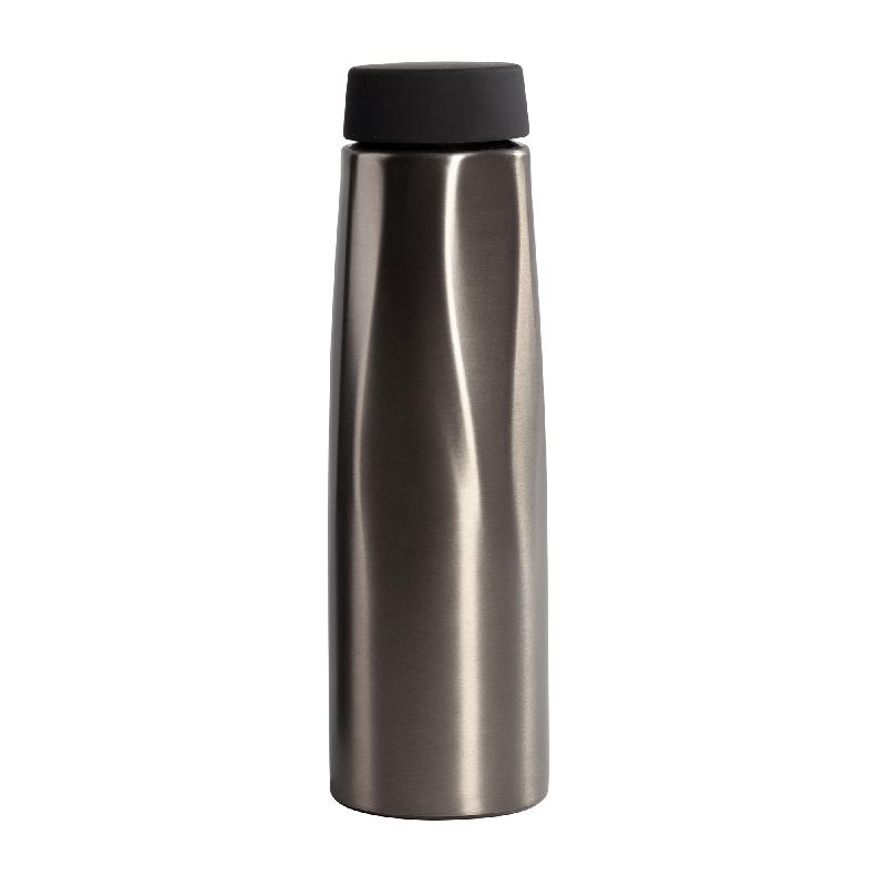 Стальной корпус термоса особенно выразительно подчеркивает рельефные «языки пламени», плавно переходящие в идеальный цилиндр. Крышка черного цвета выполнена в покрытии soft touch. Полностью герметичный. Компактный объём в 500 мл удобно брать с собой в путешествия, поездки или на прогулку. Горячий, согревающий напиток или прохладный освежающий коктейль – выбор за вами! Можно мыть в посудомоечной машине (без крышки).