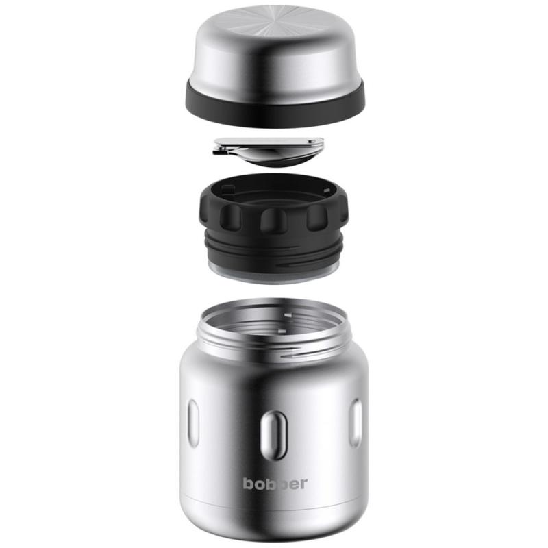 Стальной вакуумный термос для еды со складной ложкой. В нем любимые блюда не соприкасаются с пластиком и остаются горячими надолго.