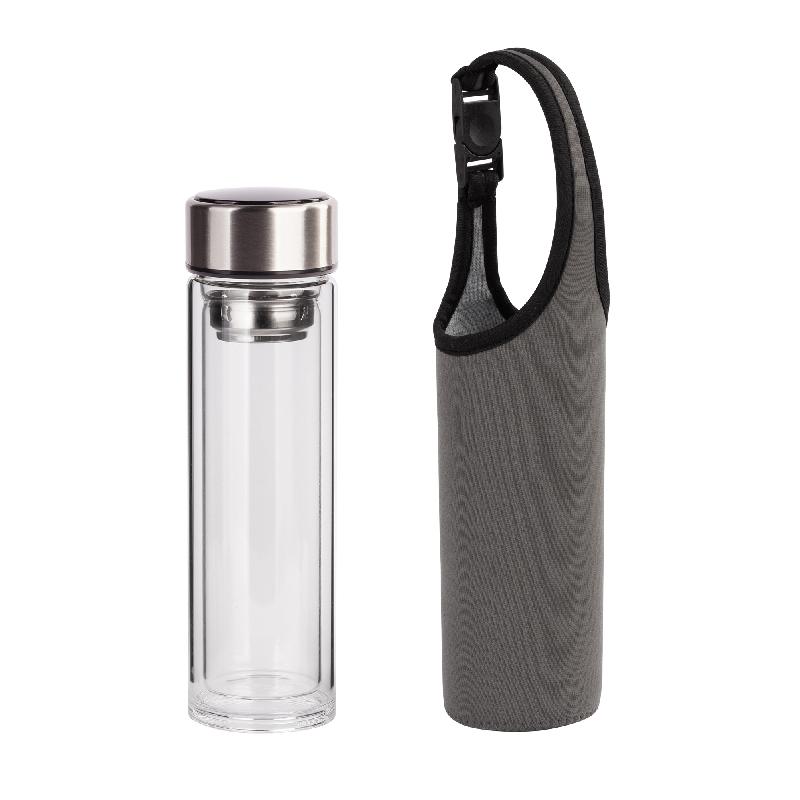 Заварочный термос "Остин" на 320 мл с двойной колбой из боросиликатного стекла - современный аксессуар, который удобно взять с собой на прогулку, в поездку или отдых. Неопреновая сумка-чехол не только защищает колбу, но и улучшает её температурные характеристики. Пользователям понравится герметичная крышка. Чай или кофе удобно заваривать прямо в термосе, в жаркую погоду можно использовать его под освежающий коктейль или цитрусовую воду. В комплекте есть съемное сито из 304 стали для фильтрации содержимого.