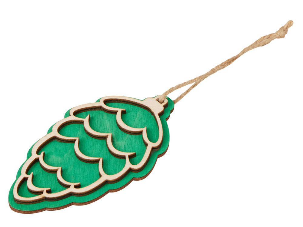 Стильная и минималистичная подвеска в форме шишка, выполненная из натуральной березовой фанеры. Лёгкий и экологичный материал придаёт изделию естественную текстуру и тёплую атмосферу.
