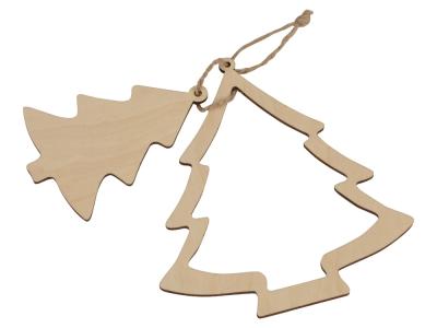 Оригинальное елочное украшение в виде двух новогодних елочек, скрепленных вместе. Подвеска выполнена из березовой фанеры. Большая зона для нанесения.