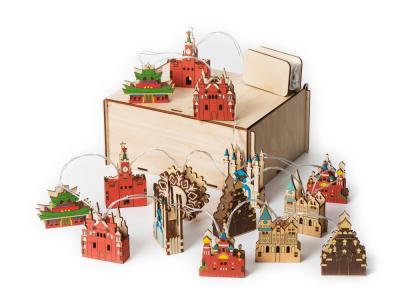 Новогодняя ёлочная гирлянда постоянного свечения с цветными фигурками достопримечательностей из натуральной березовой фанеры сделает процесс украшения ёлки или дома не только увлекательным, но и познавательным!