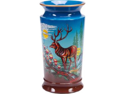 Необычная керамическая ваза с изображением оленя прекрасно подойдет в роли подарка не только женщинам, но и мужчинам, любящим охоту. Ваза покрыта яркими красками. В комплекте прилагается подарочный футляр.