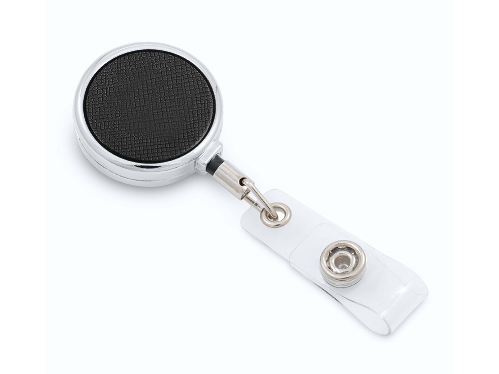 Ретрактор может быть не просто средством для закрепления бейджа или пропуска, но и стильным деловым аксессуаром, компонентом welcome pack или набора для конференций, который будет продолжать фирменный стиль вашей компании при помощи брендирования. Благодаря металлическому корпусу и вставке из экокожи он смотрится очень элегантно и строго.