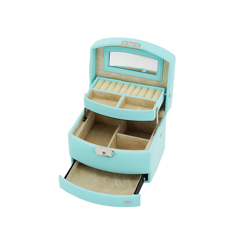 Изысканная и стильная шкатулка для украшений Jardin D'Ete P6207C из нежнейшей искусственной кожи в модном бирюзовом цвете – превосходный подарок, который быстро станет неотъемлемым элементом дамского туалетного столика.