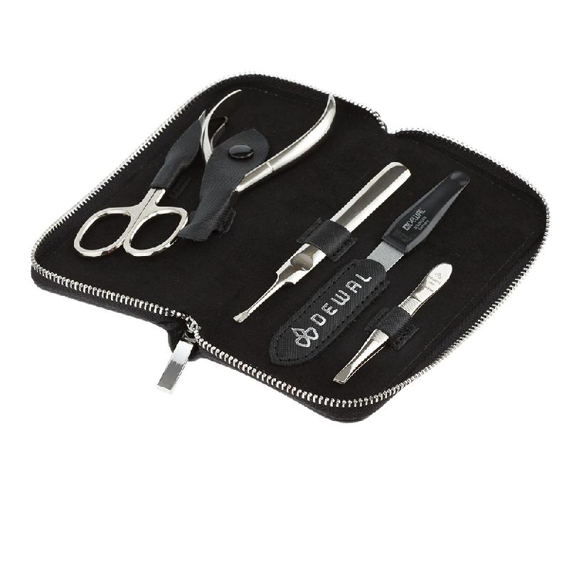 • Футляры изготовлены из первоклассной натуральной кожи. Сдержанные и элегантные расцветки выделяют маникюрные наборы Dewal среди других брендов.