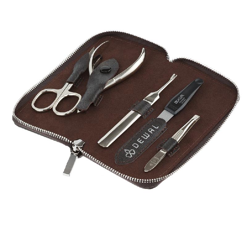 • Футляры изготовлены из первоклассной натуральной кожи. Сдержанные и элегантные расцветки выделяют маникюрные наборы Dewal среди других брендов.