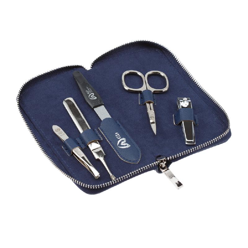 Маникюрный набор GD, 5 пр. Инструменты: ножницы универсальные, книпсер, пилка металлическая 12,5 см, удалитель кутикулы, пинцет скошенный. Футляр: искусственная кожа, цвет синий, фактура - гладкая