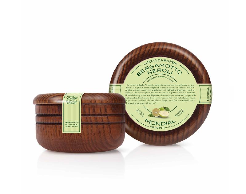 Крем для бритья Mondial "BERGAMOTTO NEROLI" с ароом бергамота и нероли, деревянная чаша, 140 мл