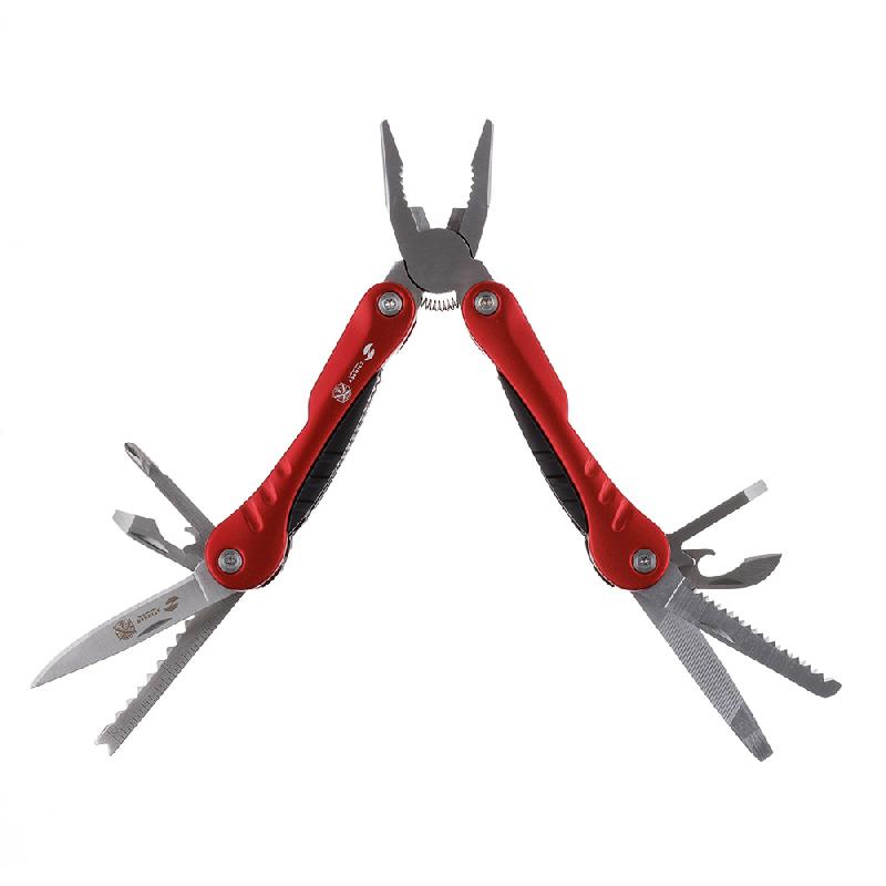 Мультитул Stinger, 103x45 мм, 15 функций, сталь, серебристо-красный, в комплекте нейлоновый чехол