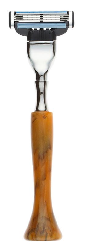 Станок для бритья IL Ceppo, MACH3, каучуковая смола, никелированная латунь, рукоять - желтый цвет, имитация мрамора
