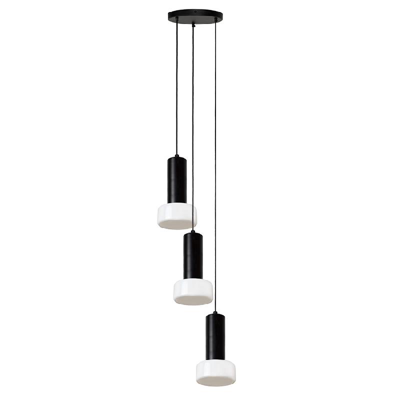 Материалы: стекло, железо. Размеры основания: 26х26х2,7 см. Диаметр основания плафона: 7,5 см. Размеры плафона: 15x15x25 см. Тип цоколя: Е14. Напряжение: 220-240 В. Максимальная мощность ламп: 3х25 Вт. Площадь освещения: 4,8 кв.м. Степень пылевлагозащиты: IP20. Длина провода: 85 см, 115 см, 145 см. Съемный плафон: нет. Лампы в комплекте: нет. Цвет: белый/черный.