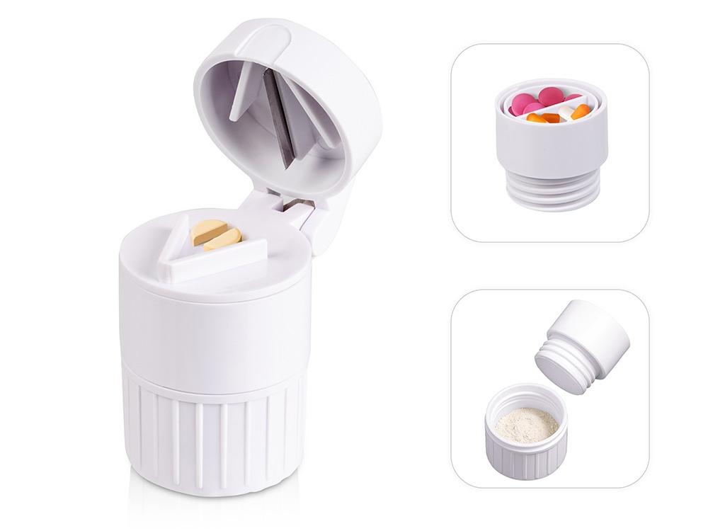 1. Резак. Под крышкой установлен специальный резак, который поможет быстро и аккуратно поделить таблетку на 2, 3 и большее количество частей, чтобы точно соблюсти дозировку лекарств;