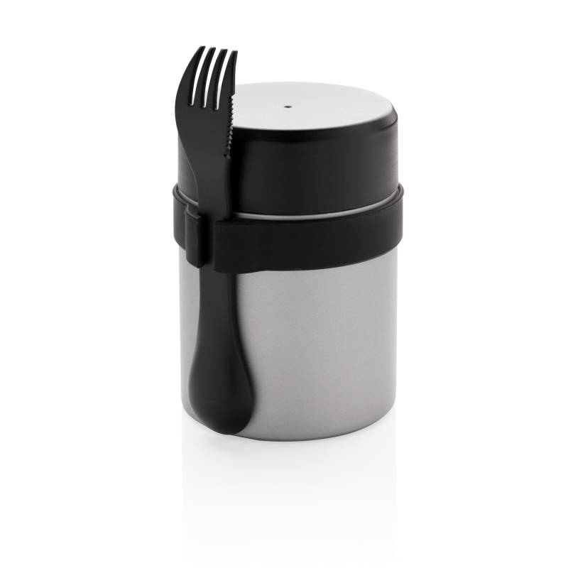 Наслаждайтесь свежей едой без посторонних привкусов и запахов с новым вакуумным термосом для еды Bogota с керамическим напылением. Он сохранит температуру горячих блюд до 5 часов, холодных — до 15 часов. На всю внутреннюю стенку термоса нанесено керамическое покрытие, чтобы вы могли наслаждаться едой без металлического привкуса. Крышка с защитой от протекания. В комплекте со столовым прибором вилка-ложка-нож 3 в 1. Объем: 400 мл. Зарегистрированный дизайн®