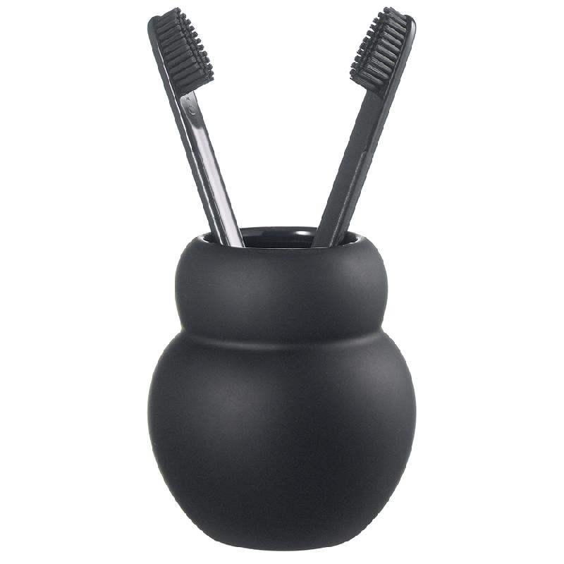Стакан для зубных щеток Mark выполнен из керамики с матовым покрытием черного цвета. Материал экологичный, устойчив к воздействию влаги и температурным перепадам. Емкость компактных размеров занимает минимум места на раковине или полке. Комбинация матовых и глянцевых фактур делает дизайн интересным.