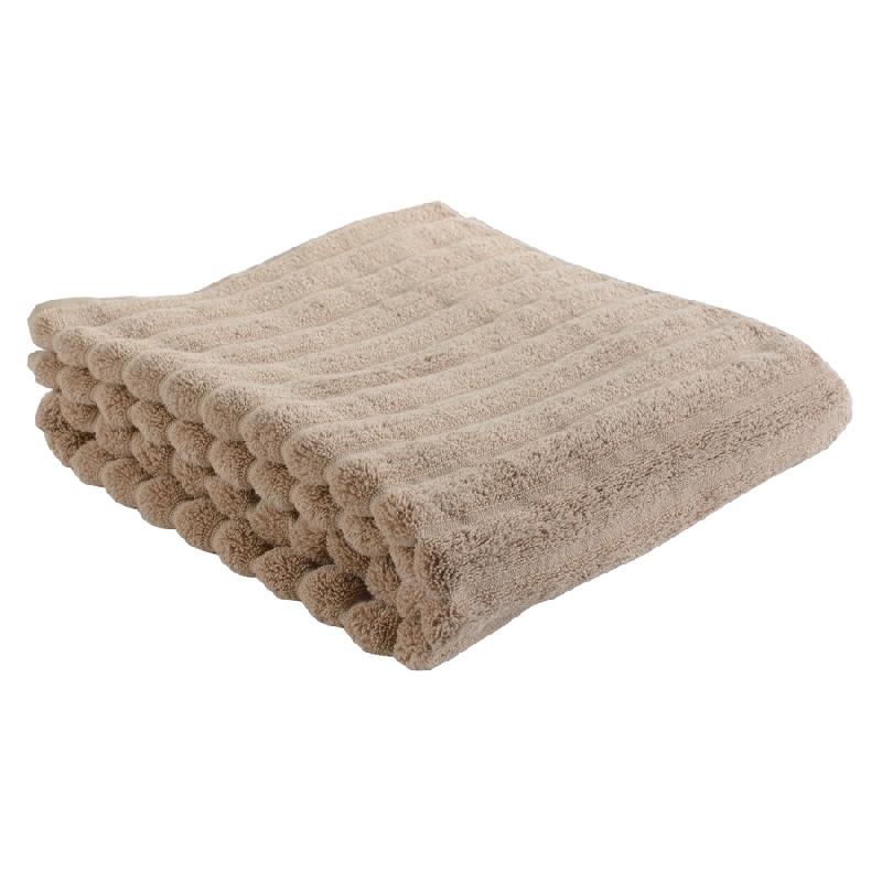Банное полотенце Waves бежевого цвета из коллекции Essential понравится тем, кто любит качественные и стильные банные принадлежности. Мягкая, при этом прочная пряжа изготавливается из лучших сортов длинноволокнистого хлопка методом тщательного прочесывания, что значительно улучшает ее качественные характеристики. Изделие быстро впитывает влагу, оставляя приятное ощущение свежести и чистоты. Полотенце отличается износостойкостью: хорошо держит форму и будет служить на протяжении длительного времени. Благодаря фактурному узору в полоску аксессуар подчеркнет любой интерьер ванной комнаты.