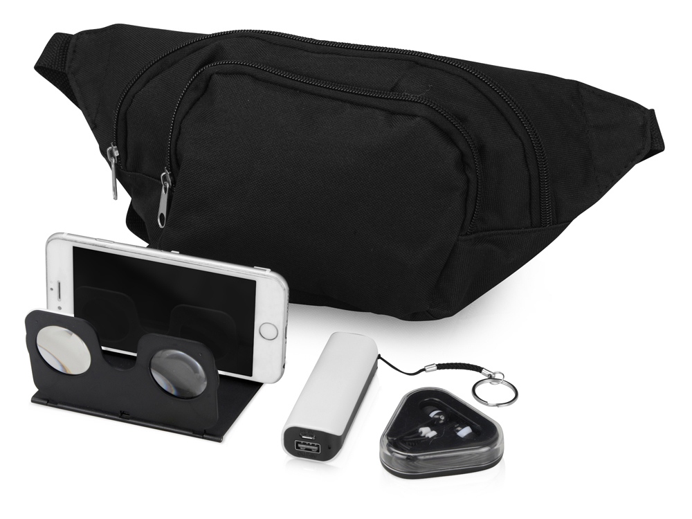 Хотите посмотреть 3D фильм в дороге? Набор Virtuality поможет с этим. Благодаря 3D очкам вы можете смотреть фильм прямо с экрана мобильного устройства, а благодаря наушникам посторонние звуки не будут вас отвлекать. С зарядным устройством Basis не нужно переживать о том, что ваш смартфон разрядится в дороге. Все предметы сложены в удобную поясную сумку. Внимание! В набор не входят провода для зарядного устройства.
